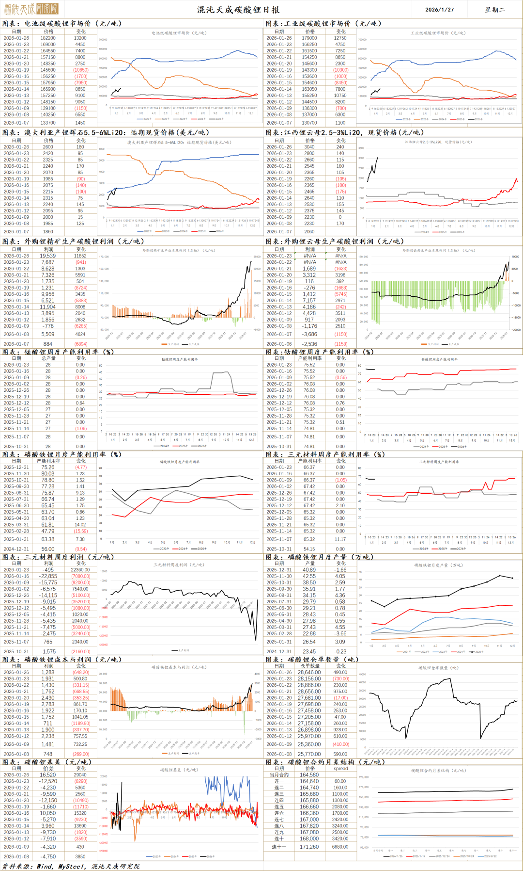 1、【广期所碳酸锂期货期权将引入境外交易者,中国锂定价影响力再升级】广州期货交易所(广期所)碳酸锂期货、期权已于2026年1月23日正式获批以“特定品种”方式引入境外交易者,标志着该品种自2023年7月上市以来的对外开放迈出关键一步。此举将便利全球锂电产业企业直接参与中国期货市场进行风险管理。目前,该期货价格已成为包括多家境外企业在内的国际锂矿贸易重要定价参考,推动定价模式向“中国价格”转变。分析指出,该工具有助于产业链企业应对锂资源开发周期长、价格波动大的风险,通过套期保值稳定经营。广期所表示将做好落地实施,持续强化监管与服务,进一步提升中国期货市场的国际影响力。(上海金属网)