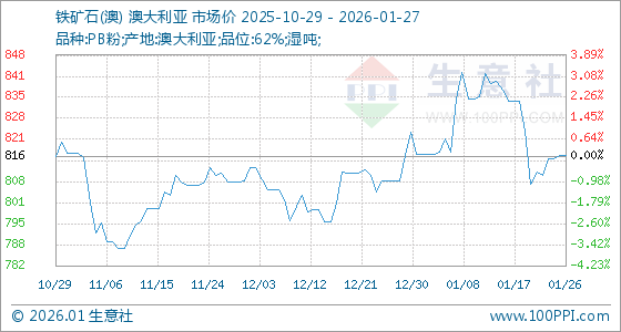 1月27日生意社铁矿石(澳)基准价为816.67元/吨