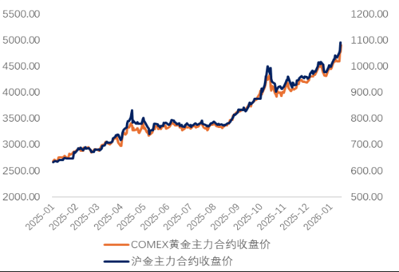 总体而言,近期全球地缘政治事件频发,本轮黄金市场的加速上涨行情主要受避险情绪驱动。当前美国经济数据普遍与市场预期一致,在通胀与就业数据趋于平缓的基准假设下,市场维持美联储将于2026年下半年逐步实施2至3次降息的预期。未来随着美联储可能重启资产负债表扩张计划,流动性环境趋于宽松,经济数据呈现渐进式放缓,叠加全球央行购金需求保持稳定、海外ETF持续吸引资金流入,贵金属市场的整体看多逻辑尚未出现明显松动。