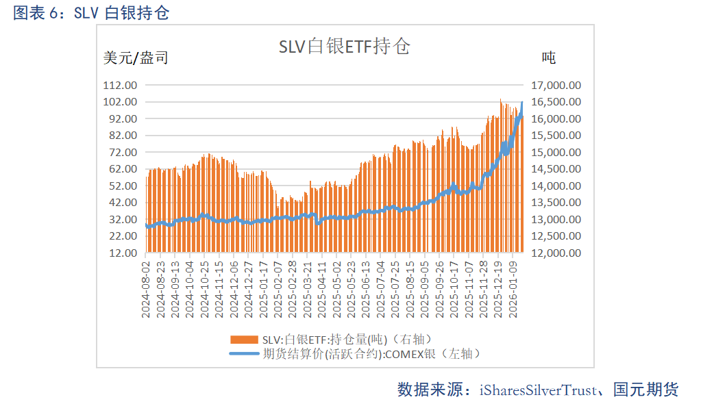 截至1月23日,SPDR持仓量为1068.53吨,与前一周相比增加了11.73吨,基金持仓有所增加。截至1月23日,SLV持仓量为16089.98吨,与前一周相比增加了28.2吨,基金持仓有所增加。
