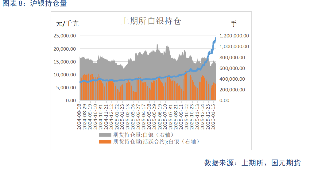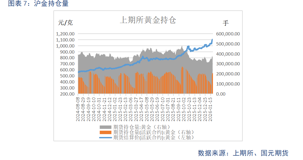 截至1月23日当周,沪金主力期货持仓量为206580手,较上周增加119282手;沪银主力期货持仓量为316349手,较上周减少10087手。