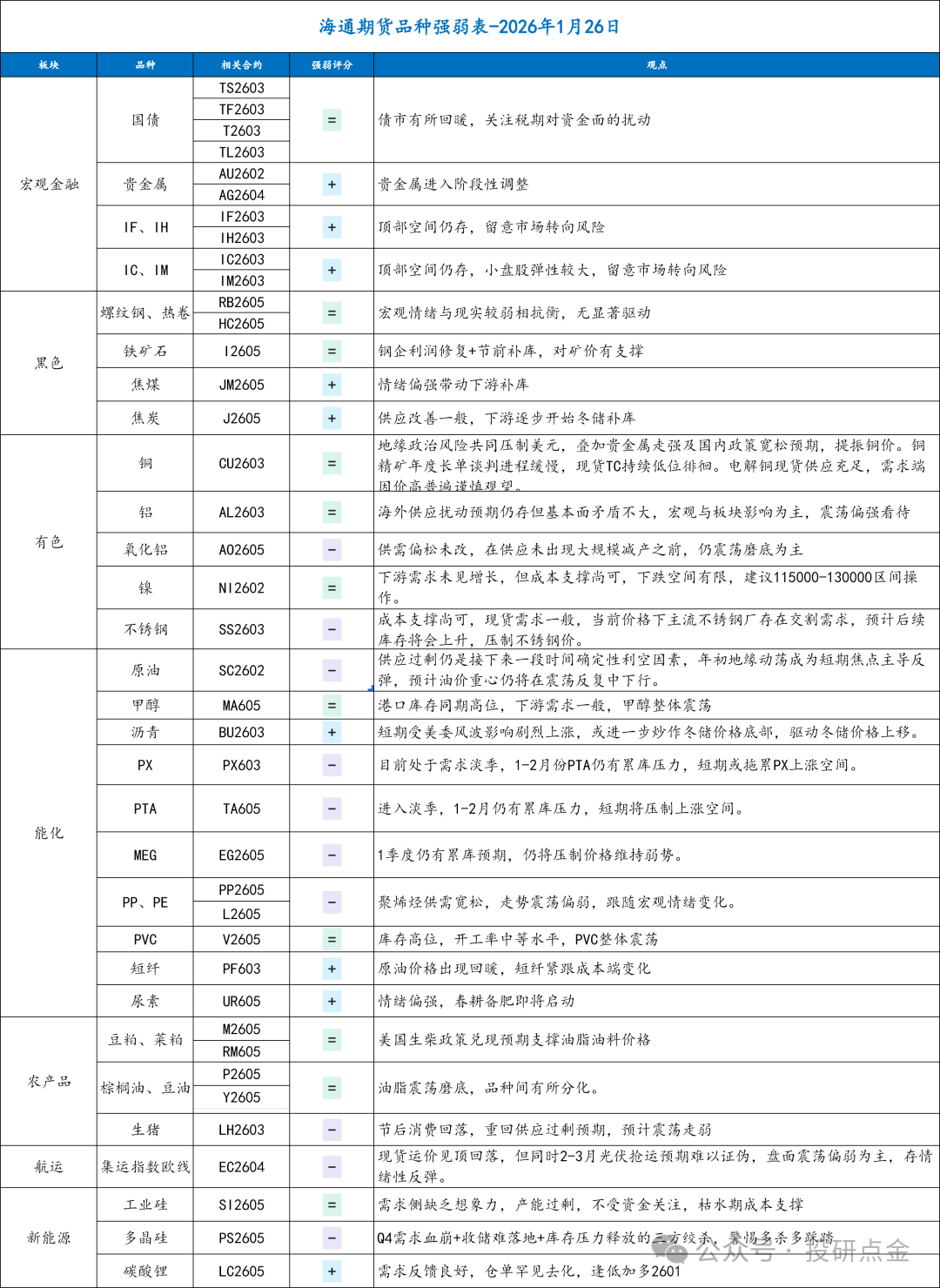 【海通期货】20260127晨间早知道|地缘政治因素扰动,贵金属全线上行;燃料油FU强势上涨,美伊地缘紧张主导市场情绪