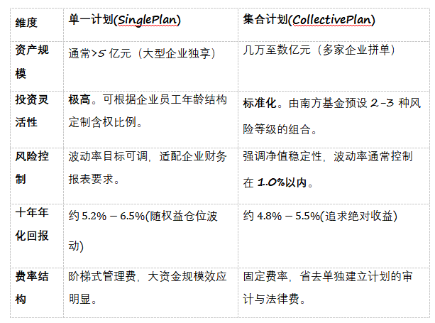 导语:在2026年现行政策下,南方基金企业年金的“单一计划”与“集合计划”不仅是规模的区别,更涉及到资产配置底层逻辑的差异。