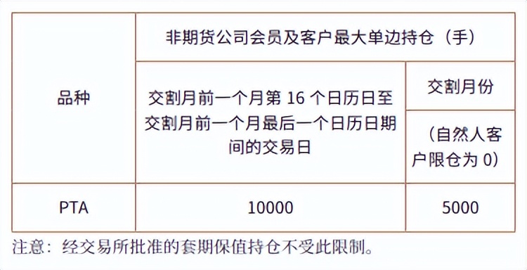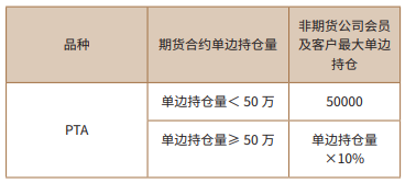 限仓是指交易所规定会员或客户按单边计算的、可以持有的 PTA 合约持仓的最大数量。