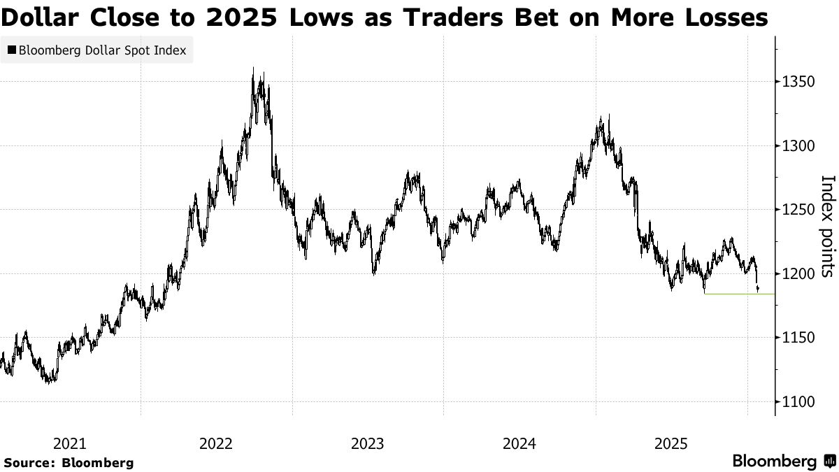今年以来,美元在十国集团(G10)货币中表现垫底,这表明投资者看待这一传统避险资产的方式正在发生转变。对美国财政赤字上升、制裁风险和贸易摩擦的担忧,以及投资者加速向黄金和其他储备资产分散配置,正共同对美元构成压力。