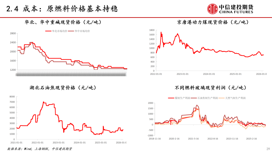 策略:短期:区间震荡。短期玻璃供需双弱,供应下降提供支撑,05合约震荡,05合约参考1040-1140区间。中期:关注低估值背景下做多机会。中期玻璃价格取决于冷修规模和政策情况,FG2605回落至1000下方可尝试布局中期做多机会。