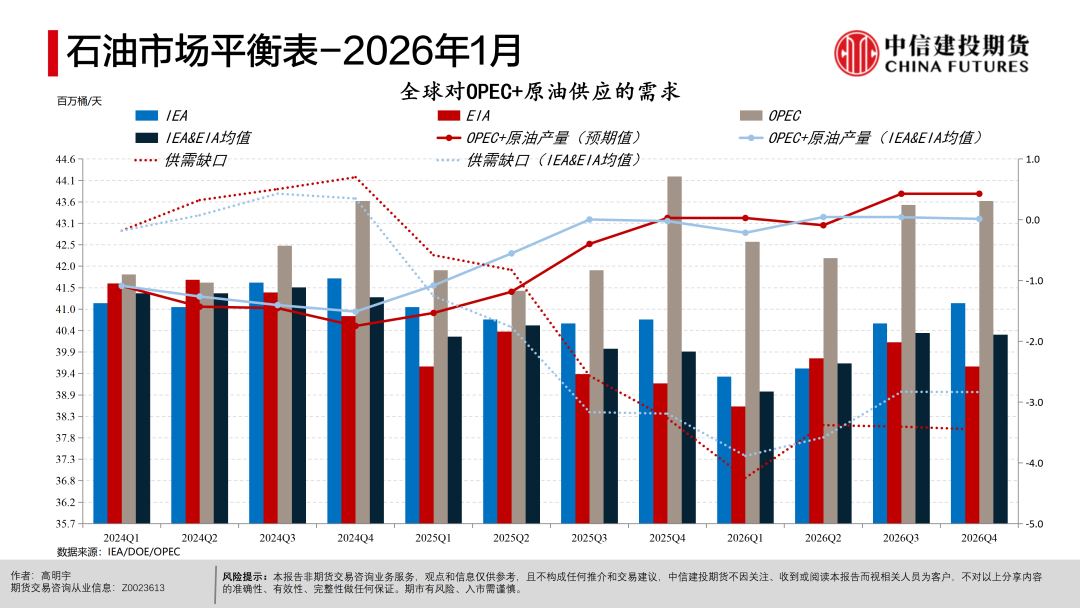 年初以来全球石油库存增加0.8%,其中炼厂开工率提升带动原油库存下降0.3%、成品油库存增加2.6%,供需宽松预期仍在兑现,此前累增的浮仓及在途原油库存也在向岸罐环节传导压力。根据1月三大机构最新平衡表,全球石油市场供需盈余将自2025年的212万桶/天扩大至2026年的340万桶/天,全年盈余压力前高后低。市场盈余背景被短期供应端扰动的现实及预期因素掩盖,在经历了上周的盘整行情后本周将进入中东地缘风险的关键验证期,重点关注深度虚值看涨期权的低买高卖波段交易机会。