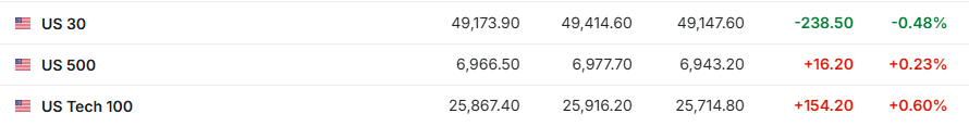 1. 1月27日(周二)美股盘前,美股三大股指期货涨跌不一。截至发稿,道指期货跌0.48%,标普500指数期货涨0.23%,纳指期货涨0.60%。