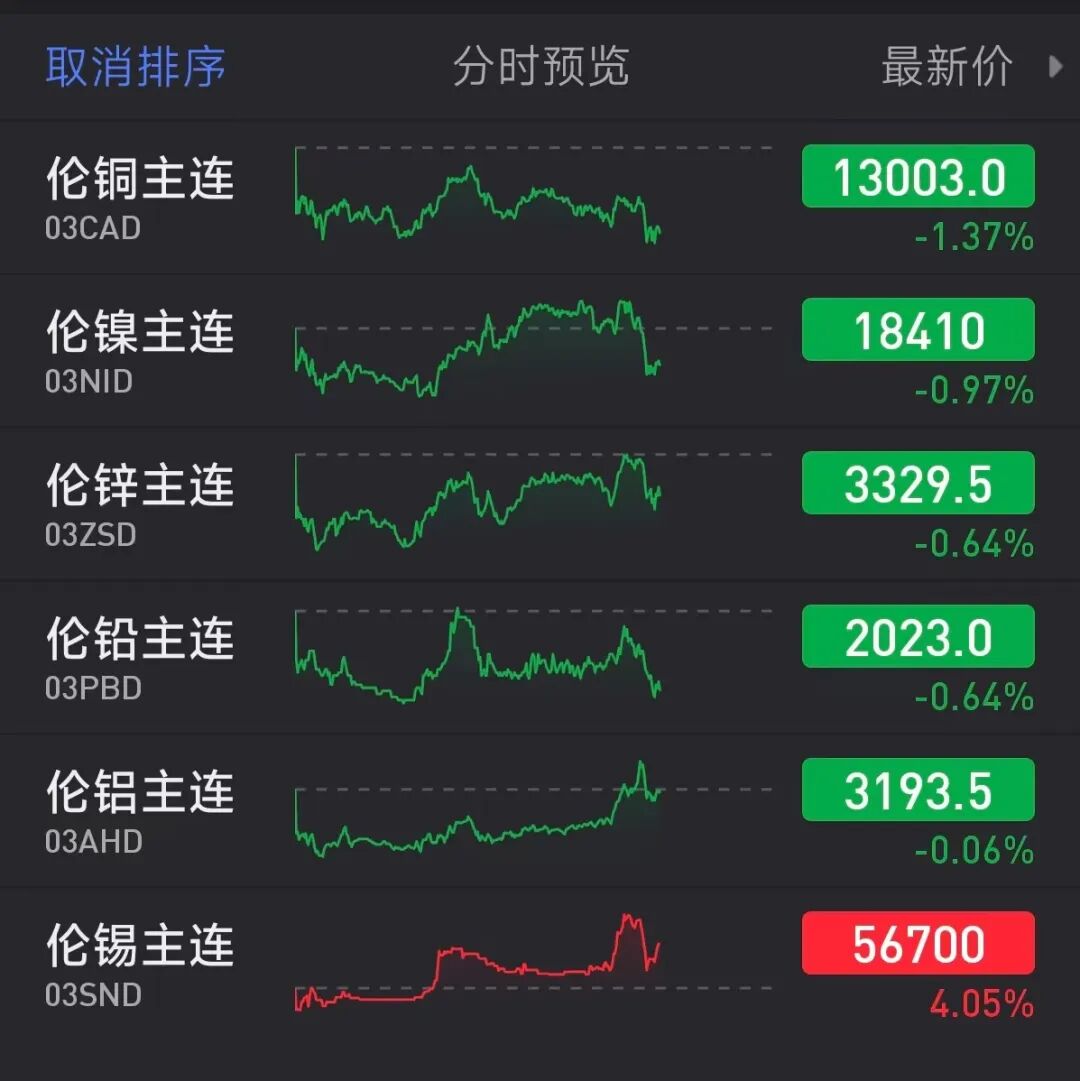 有色金属大多数回调。铜跌幅居前,截至发稿,伦铜、沪铜主力合约均跌超1%。镍、锌、铅等金属纷纷飘绿。