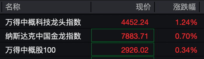 美股方面,三大指数涨跌不一。道指下跌,纳指、标普500指数则微幅上涨。中概股多数上涨,万得中概科技龙头指数涨超1%。半导体、存储概念股大涨。