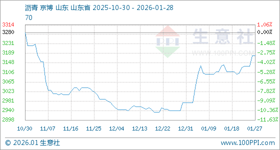 1月28日生意社沥青基准价为3180.00元/吨