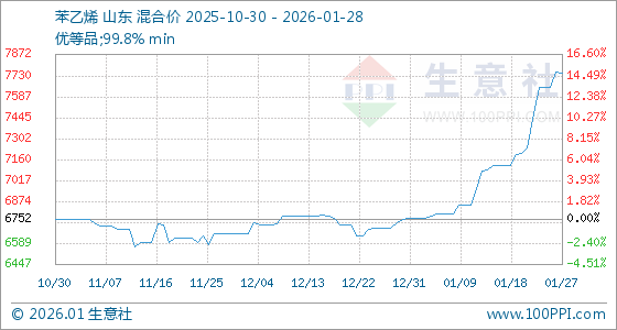 1月28日生意社苯乙烯基准价为7748.00元/吨