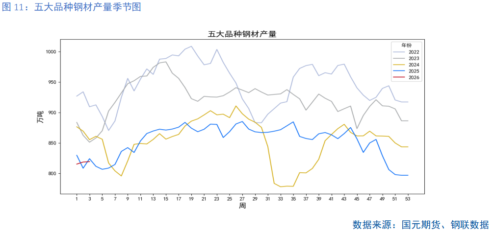 五大品种表需明显下降,下游淡季特征明显。出口方面,多家钢厂同步上调出口报价,出口管理机制可能带来港口通关与履约成本上升,进一步压缩让利空间。在价格优势减弱的背景下,1月出口的实际成交预计走低。