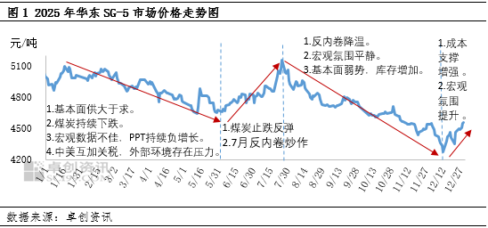 2025年国内PVC粉市场震荡下行,1-5月持续下跌,6-7月短暂反弹,8月-12月中旬再度下跌,12月下半月价格震荡反弹,全国SG-5均价在4820元/吨,较2024年下跌13.37%。市场下跌的原因主要是供大于求进一步加剧,库存不断攀升,另外1-5月份宏观氛围表现不佳,中美互加关税,外部压力一度增加。8月至12月中旬的下跌再度交易供大于求的基本面逻辑。价格反弹主要有两个时间段,一个是6-7月,6月份PVC粉止跌略涨主要是煤炭止跌反弹,PVC粉成本坍塌逻辑证伪,7月份商品市场炒作“反内卷”,情绪对PVC粉市场形成明显带动。第二个时间段反弹是12月中旬开始,主要支撑是亏损加剧,部分PVC粉企业被迫减产,另外宏观情绪再次升温,再度对PVC粉市场形成带动。