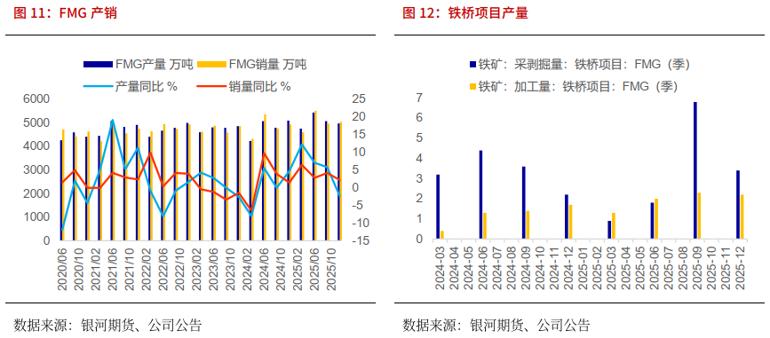 Fortescue:四季度铁矿石产销维持在高位,2026财年Fortescue总出货量指导目标保持不变为1.95-2.05亿吨,,其中包括来自铁桥的1000-1200万吨(100%)。发运目标区间均值较2025财年上调500万吨,预计2026年总发运增加500万吨。