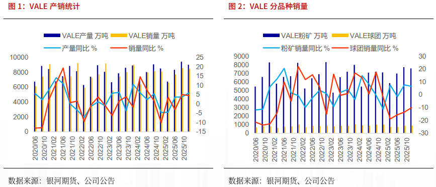 整体来看,四季度VALE超市场预期,总产量超过区间目标上沿,2026年VALE铁矿石产量目标3.35-3.45亿吨,区间目标上调1000万吨,预计2026年增产500万吨左右。
