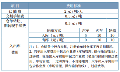 b、仓储费收取节点:自标准仓单注册之日起至交易所开出《提货通知单》前 一日止,交易所代交割仓库收取仓储费,交易所在每月第一个交易日按月计算划转 上个月发生的仓储费;交易所代收之外的费用,交割仓库直接向货主收取。