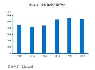 第一,铁合金产量的波动弹性相对较大。一方面,由于铁合金在 钢铁产业链中处于相对弱势地位,且行业产能过剩,导致企业利润较低, 经常会陷入亏损。另一方面,铁合金停减产,复增产相对简单,企业 在亏损情况下会迅速采取停减产措施,在利润较好的时候会快速提产增产,利润对企业产量的传导性较好。这两方面因素共同导致了产量 波动性较大。