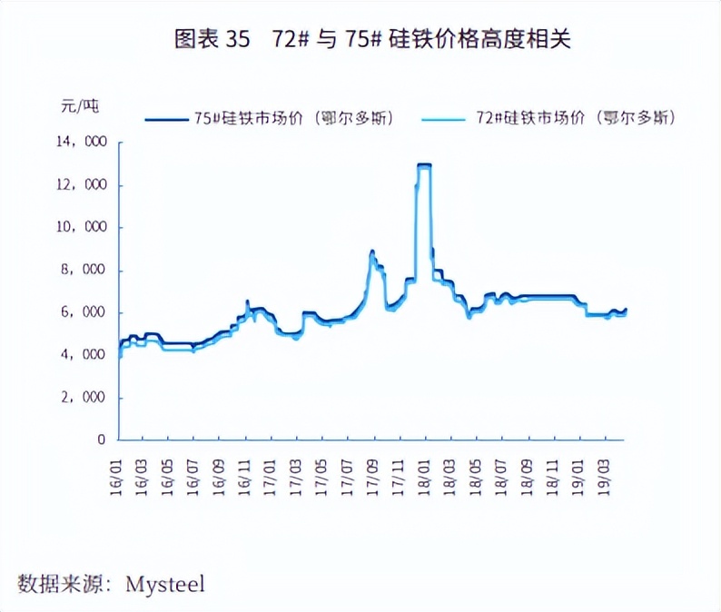 只要企业生产的产品和期货基准交割品的交割具备较强的相关 性,就可以利用期货合约进行套期保值。以硅铁为例,虽然基准交割 品为 72# 硅铁,但是 75# 硅铁和其相关性很高,达到了 0.998,两者 价差非常稳定。