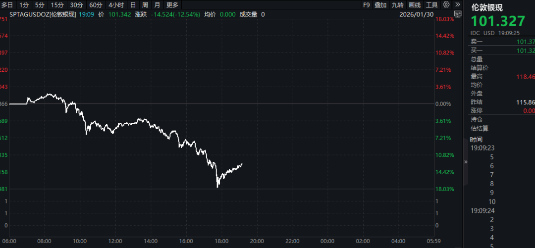 盘中重挫逾18%!白银等贵金属品种迎来史诗级暴跌