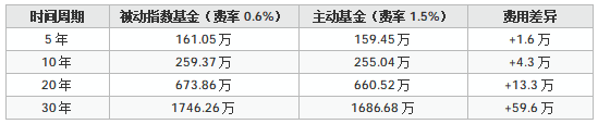 长期投资中,费用低1个百分点的复利效应: