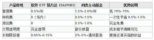 二、软件ETF易方达(562930)vs 主动基金费用对比
