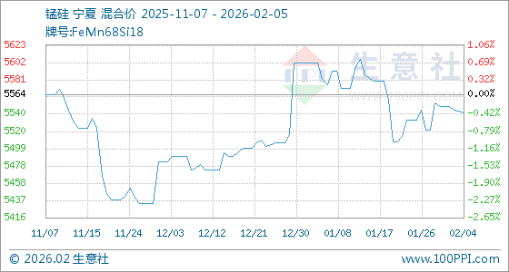 2月5日生意社锰硅基准价为5542.00元/吨