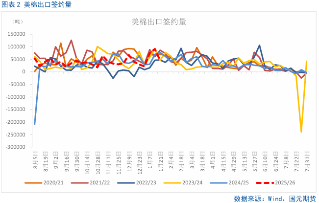 全球棉花供需情况:偏多。根据美国农业部发布的1月份全球供需预测,2025/26年度美国棉花产量和期末库存环比减少,期初库存、消费量、出口量和进口量没有变化。