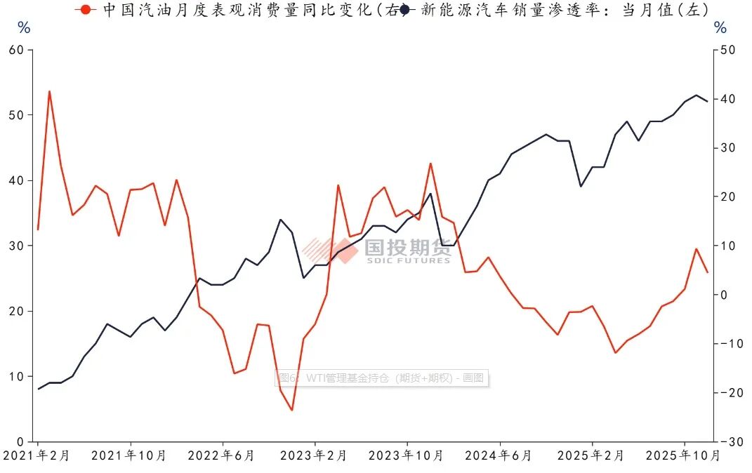 图6:中国汽油表观消费同比增速与新能源汽车销售渗透率