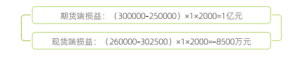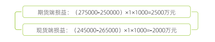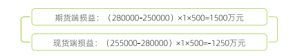 综合损益为盈利250万元。企业D通过建仓期货多头头寸建立虚拟库存,一方面降低原材料采购成本,同时降低提前购入原材料带来的资金压力,另一方面如果在头寸持有阶段未能找到货源,企业可以通过期货市场实物交割取得货物。