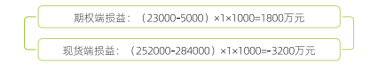 碳酸锂生产企业C付出5000元/手的权利金买入1000手8月到期、执行价格为270000元1吨的碳酸锂看跌期权。7月初,碳酸锂08期货合约价格从280000元/吨下跌至250000元1吨,期权权利金上涨到23000元1吨,现货价格从建仓时的284000元/吨下跌至252000元/吨。企业的损益如下: