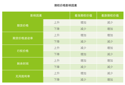 对于看涨期权,行权价格越高,买方盈利的可能性越小,因此与权利金呈反向关系。对于看跌期权,行权价格越高,买方盈利的可能性越大,因此与权利金呈正向关系。