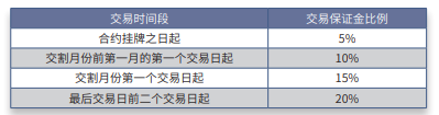 能源中心根据期货合约上市运行(即从该期货合约新上市挂牌之日起至最后 交易日止)的不同阶段制定不同的交易保证金收取标准。