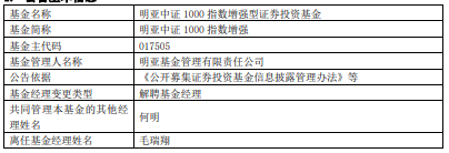 毛瑞翔离任明亚价值长青混合明亚中证1000指数增强