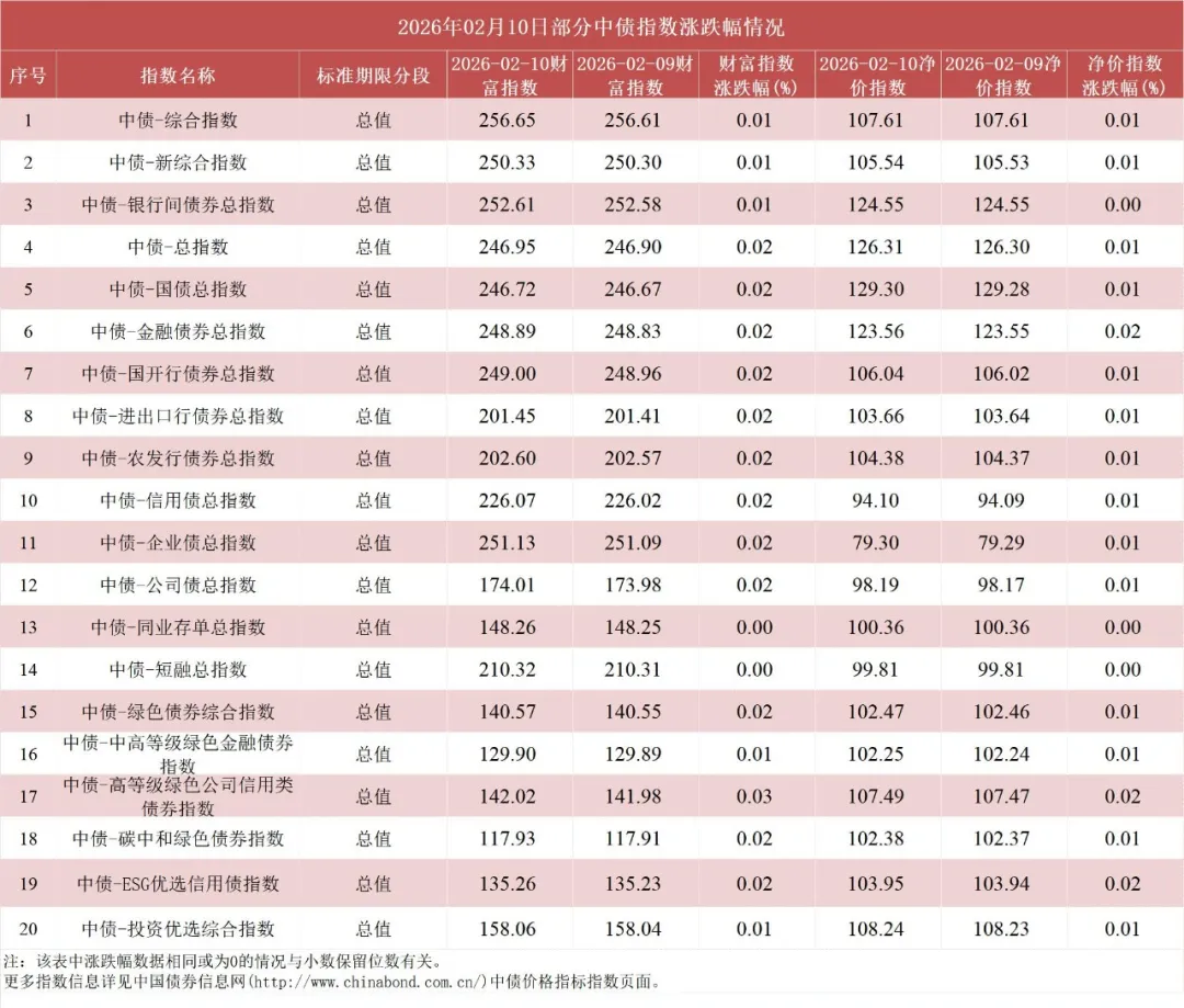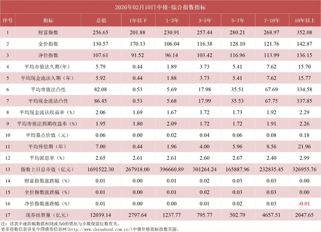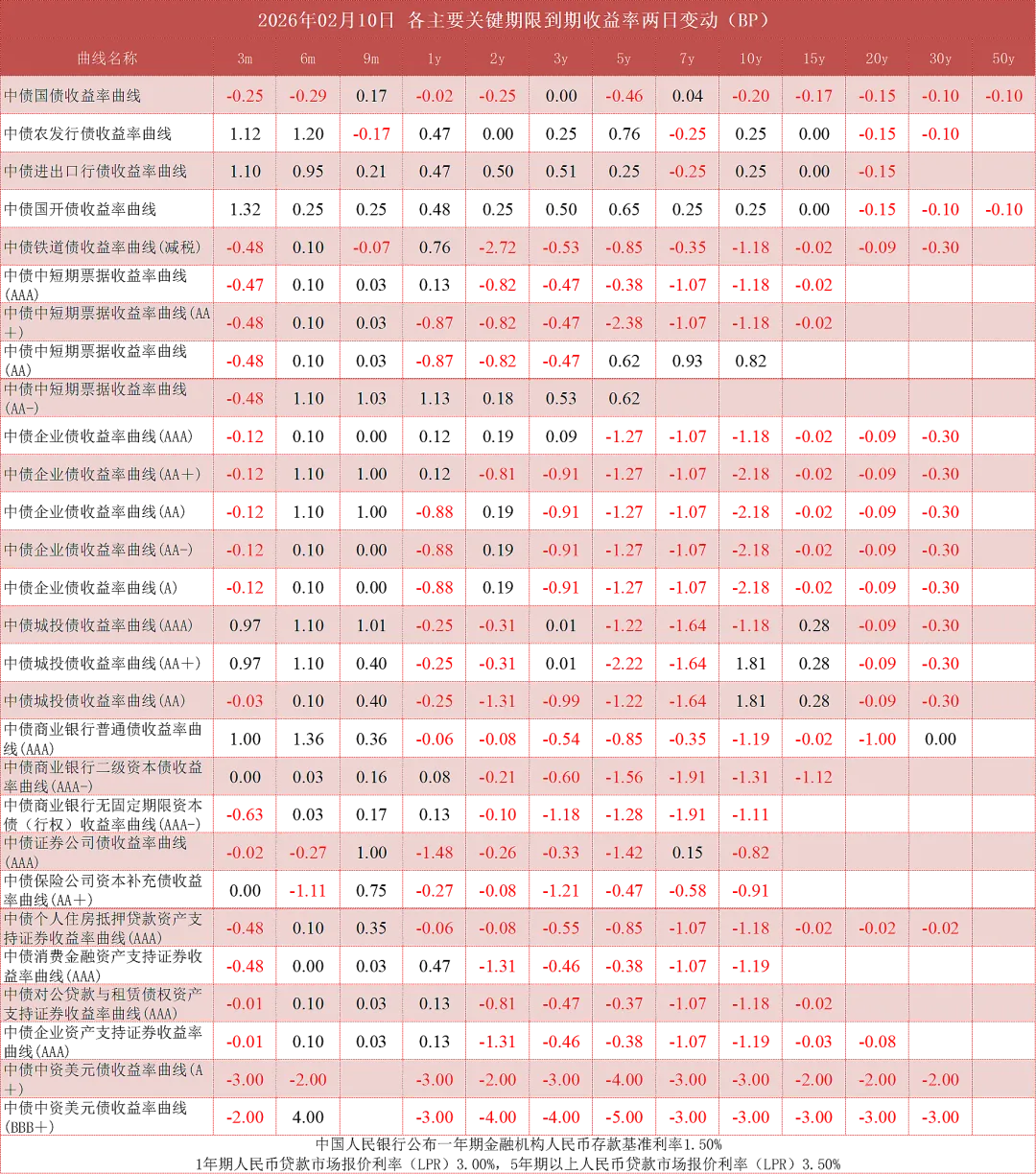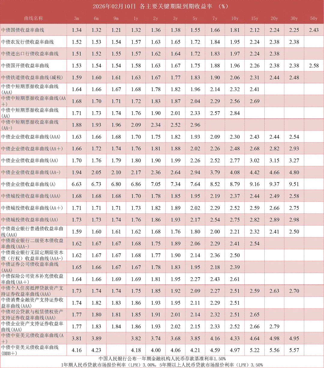 债市值言:中债收益率曲线和指数日评2026年2月10日