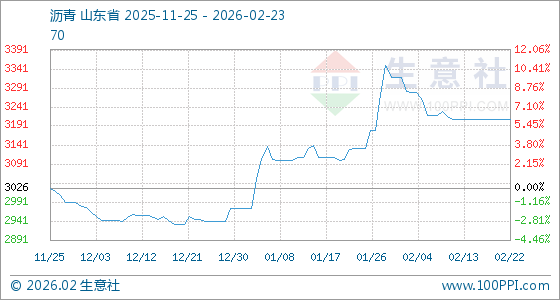 2月23日生意社沥青基准价为3210.00元/吨