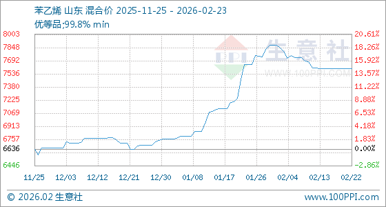 2月23日生意社苯乙烯基准价为7594.00元/吨