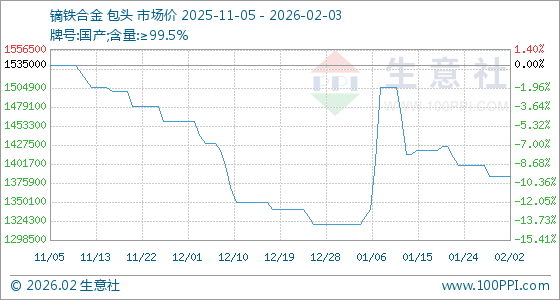 2月3日生意社镝铁合金基准价为1385000.00元/吨