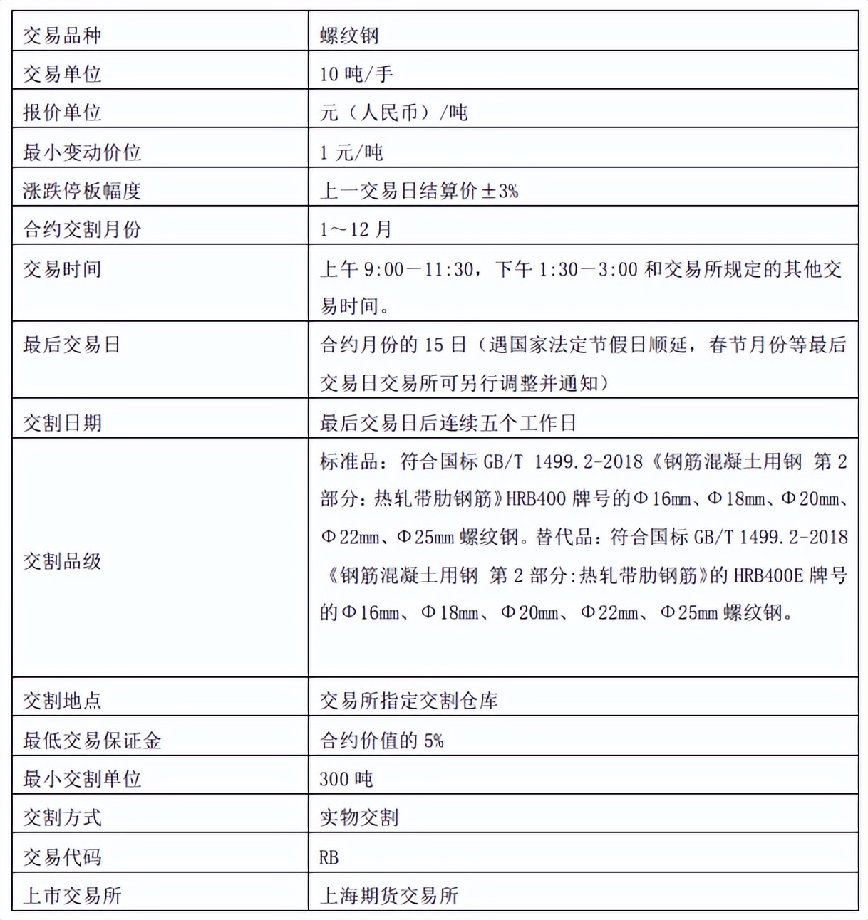 螺纹钢期货合约以及螺纹交割质量规定