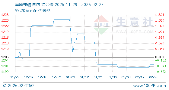 2月27日生意社重质纯碱基准价为1202.86元/吨