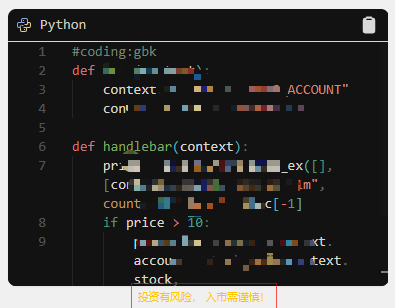 禁止使用 time.sleep()、死循环、同步等待等操作,否则会导致所有策略卡死。