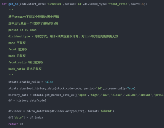 这样就能避免因为依赖缺失导致的报错啦。以下是一个基于xtquant + miniQMT获取股票行情的方法,后面的行情Dataframe数据都会通过这个方法来获取: