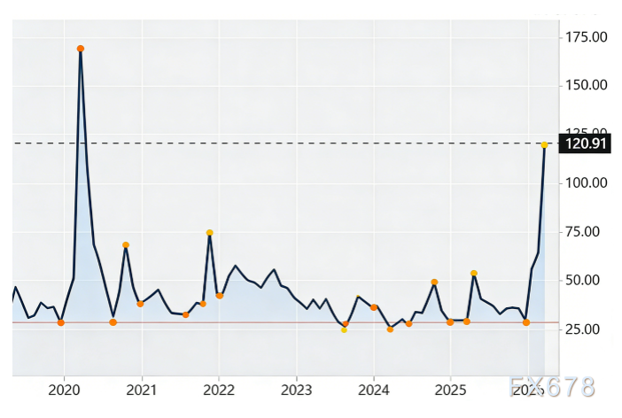 作为全球流动性最佳的大宗商品之一,原油原本走势相对平稳,但近期其波动率指标已飙升至2020年5月以来的最高水平——芝加哥期权交易所(Cboe)原油波动率指数在盘中突破108关口,若维持该水平收盘,将创下多年来的纪录。
