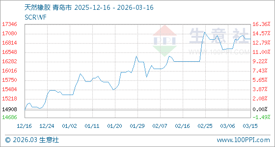 3月16日生意社天然橡胶基准价为16933.33元/吨