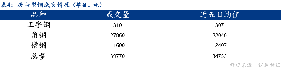 2、成交量为20家型钢厂当日成交,其中包括工字钢6家、角钢7家、槽钢7家。