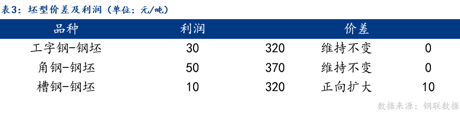 今日坯型价差,槽钢与钢坯正向扩大。