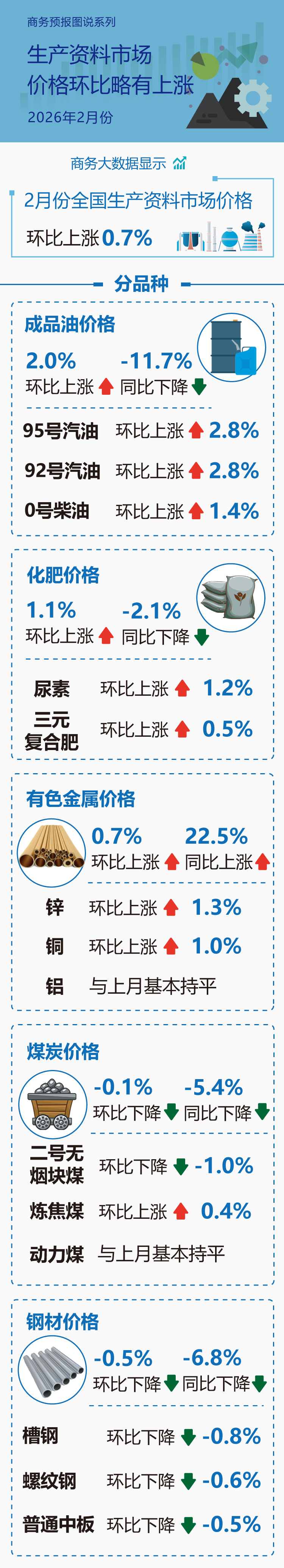 商务部:2月份生产资料市场价格环比略有上涨