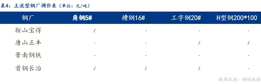 2、成交量为20家型钢厂当日成交,其中包括工字钢6家、角钢7家、槽钢7家。