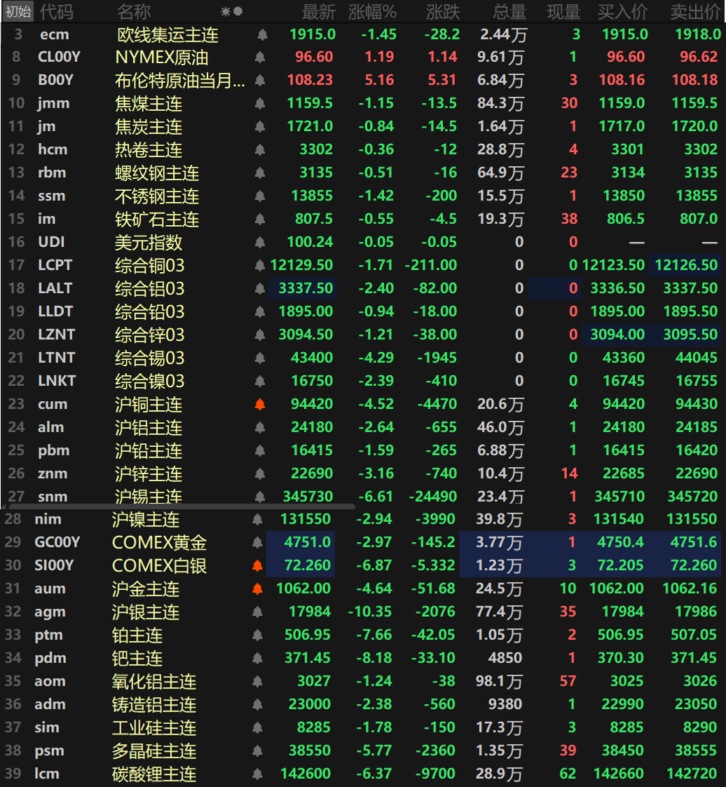 金属集体下挫沪锡碳酸锂铂钯跌超6%沪铜跌逾4%沪银跌超10%【SMM日评】