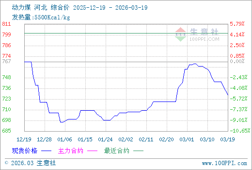 3月19日动力煤期货主力合约2604收盘价为801.4元/吨。